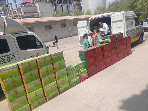 2025年7月15日中寧縣總工會(huì)夏季送清涼、防暑保安康慰問(wèn)天祥公司職工,送來(lái)瓶裝水、茶和乳酸乳等飲品。